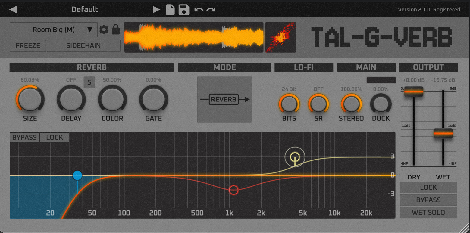 TAL-G-Verb is a musical effect capable to build high quality artificial reverb